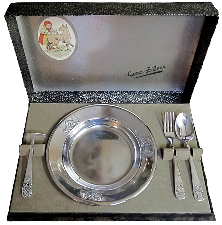 Het was mogelijk een compleet kindergerei te kopen bestaande uit: kindercouvert, etenschuiver, beker, bord, eierdopje en eierlepel en servetring. Maar ook in acht verschillende combinaties als het te begrotelijk was. Het was een fraaie verkooptechniek van de Gero. De complete set droeg etuinummer 929 en de andere: