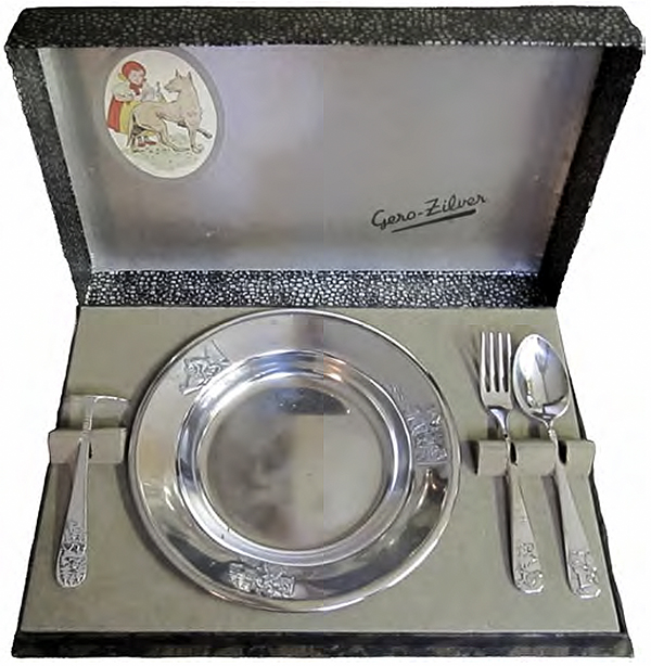 Dit kindergerei - ook wel kindergarnituur en kinderservies genoemd - hoort tot een serie van vier sprookjes: Assepoester, Hans en Grietje, Roodkapje en Sneeuwwitje. De afbeeldingen zijn een ontwerp van de Deense zilversmid en ontwerper Georg Nilsson (1888-1975). Hij was van 1933 tot 1957 als vaste ontwerper in dienst van de Gero; de laatste jaren als chef van de ontwerpafdeling.