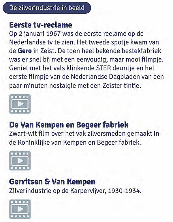 Daarnaast kunt u de stichting steunen met zilveren of verzilverde voorwerpen uit Zeist en met documentatie of herinneringen aan de Zeister zilverindustie.